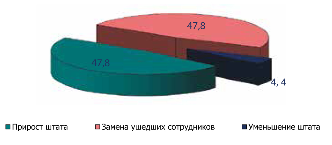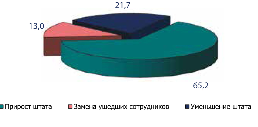 Рис 2. Планируемая политика найма персонала в 2014 г., % компаний